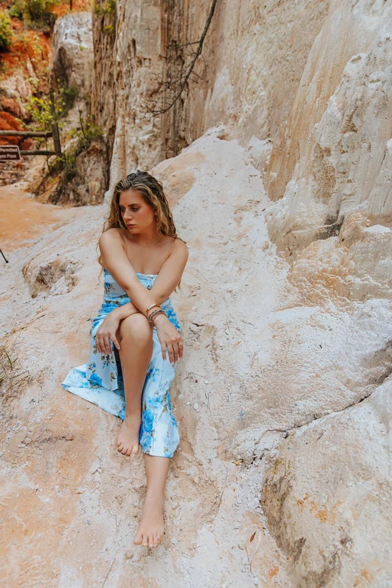 overall 10/10 location ! We didn’t have to fight a crowd for spots to shoot and get creative, and those that passed by cheered us on and told us how beautiful the photos were going to be. If you are going to shoot here, head to the gift shop to grab a water and a map, then go ten min down to the creek. Once you have arrived to the muddy creek, turn left and follow it to section four and five for ten minutes and you will run into this shoot location. To come back, return the way you came. I hope this helps!